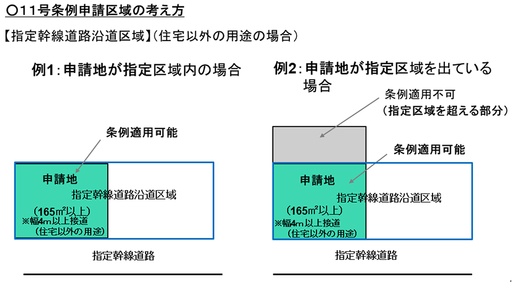 イ 許可を受ける敷地が旗竿の形状でないこと。※2 - 【指定幹線道路沿道区域】