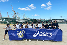 走り方教室では、FC今治と株式会社アシックスと連携し、走り方が上手になるポイントや効率の良い体の動かし方について指導しています。