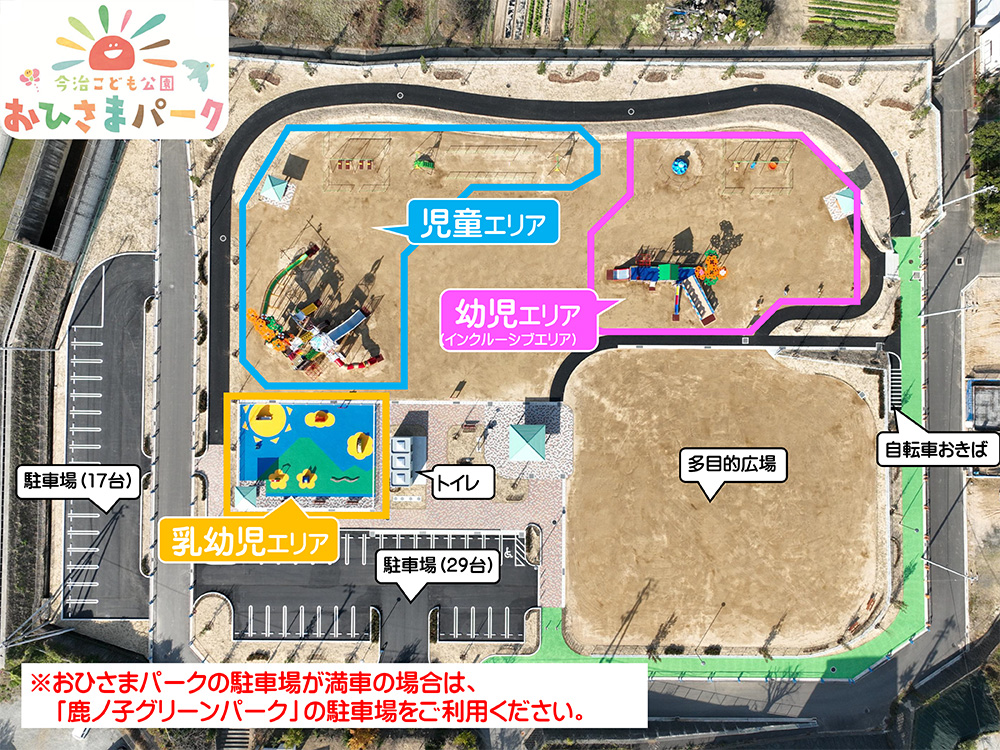 「おひさまパーク」には、「いつでもみんなが おひさまみたいな笑顔で遊べるように」との願いが込められています。