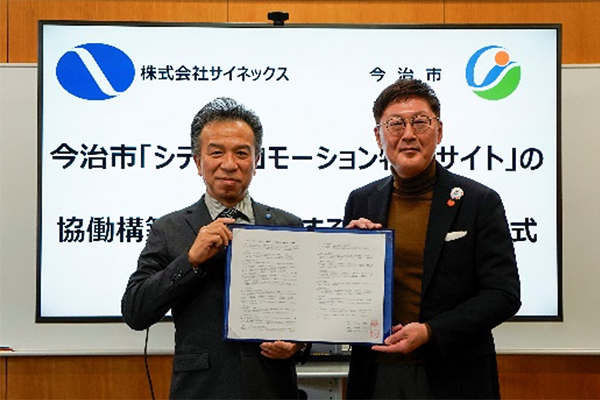 今治市と株式会社サイネックスは、令和8年1月21日に今治市「シティプロモーション特設サイト」協働構築・運用に関する協定書の調印式を行いました。