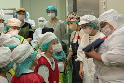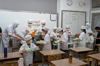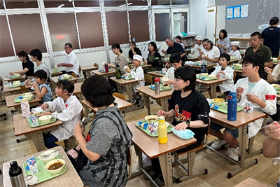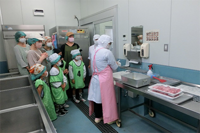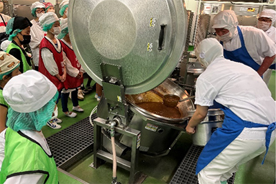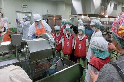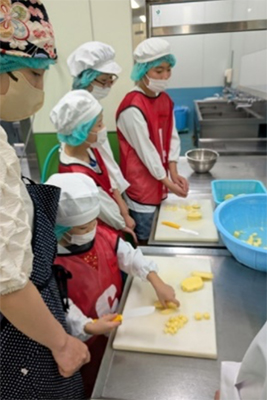 令和7年8⽉24⽇(日曜日)に、市内の小学生と保護者10組が調理場内探検および調理体験ならびに試食(カレー)を行いました。