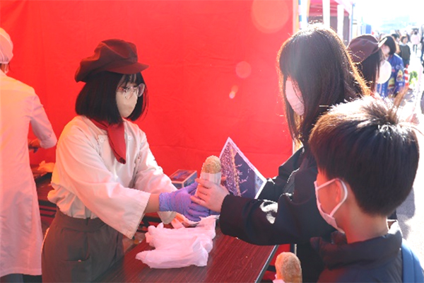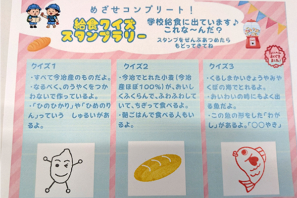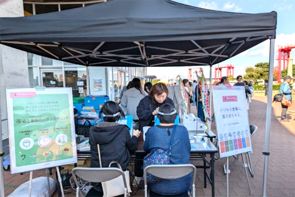 当日は、今治市の学校給食に関するクイズスタンプラリーや、今治精華高等学校の生徒さんによる揚げパンの提供、ストレスチェック・ベジタブルチェックなどを実施し、延べ約1,110人の来場者にご参加いただきました。