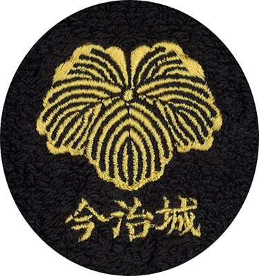 今治城を築城した藤堂高虎の家紋「藤堂蔦」をワンポイント(金色)で添えています。