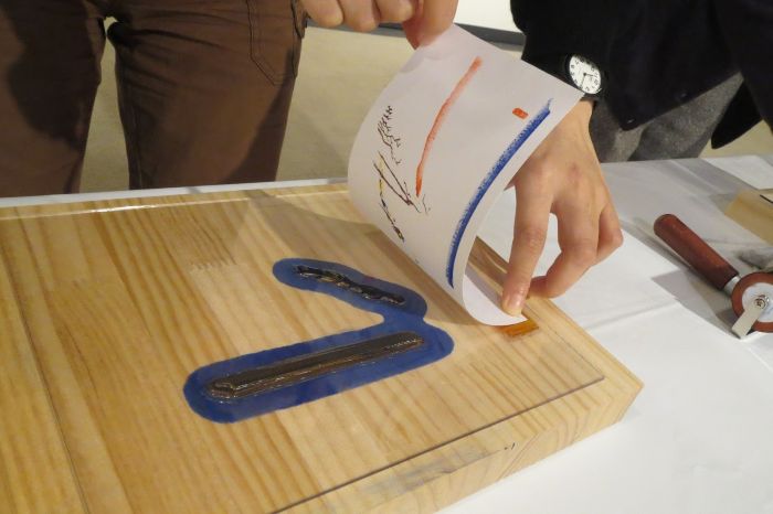 スタンプ台とローラーを使った簡単な摺り体験です。