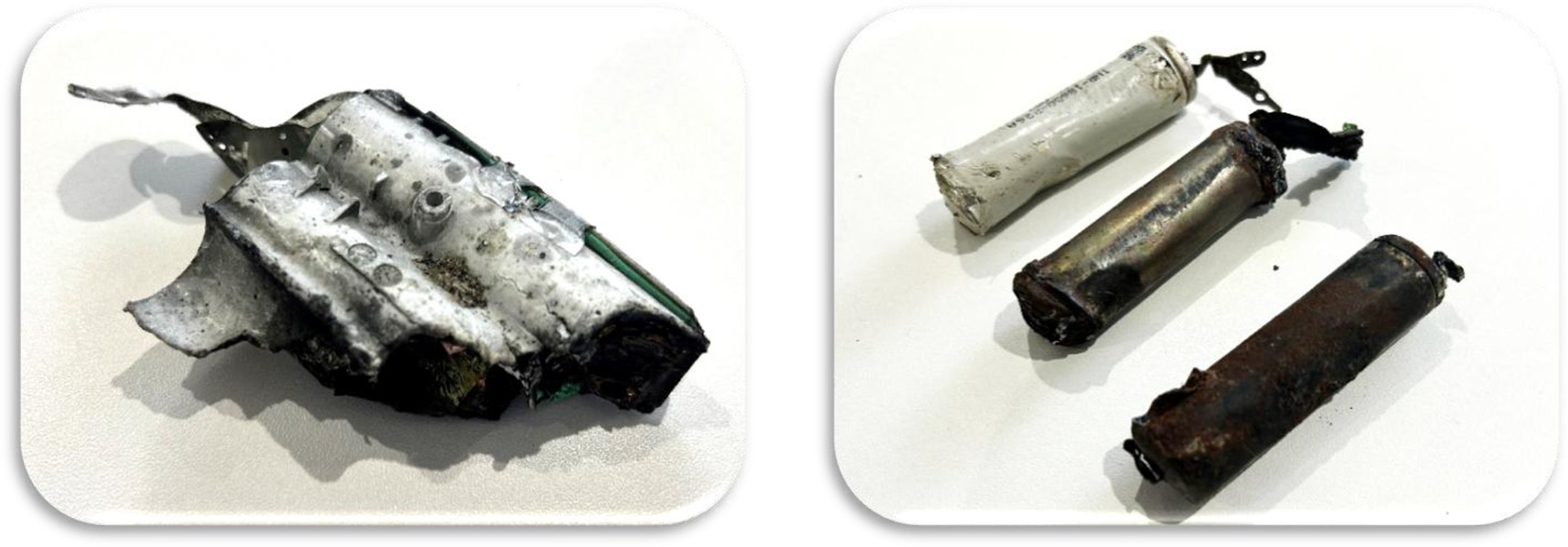 短絡(ショート)が原因で発火したと推測しています。 - その他焼損したリチウムイオン電池